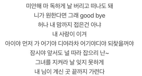 내가 널 두고 먼저 떠나서 날 미워해도 되고 아파도 할테지만 넌 날 떠나지 말아줘.