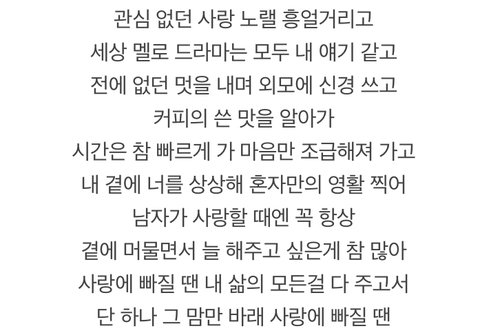 남자가 사랑에 빠지면 그 사람 곁에서 다 퍼주지만 난 단 한가지, 너의 마음만 바란다