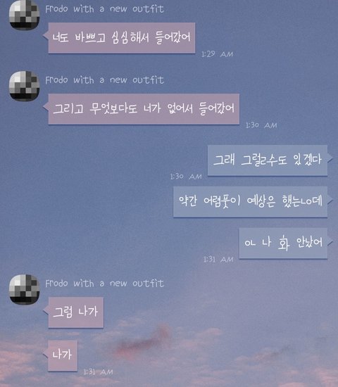 정말 저한텐 너무 소중하고 특별한 사람인데 계속 의심받는것 같아 많이 속상했어요. 화가 나면 말을 일부러 아프게 하는 사람이라 마음고생도 많이 하고.. 서로 너무 지쳐만 가서 결국 둘 다 단톡을 나가기로 했어요.