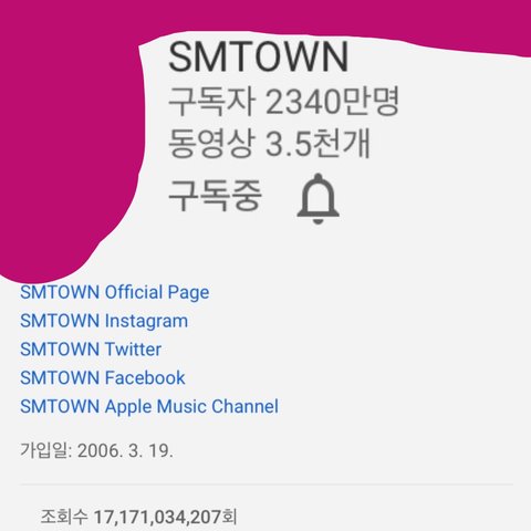 SM 소속사 연예인들 공식 계정 (보통 뮤비 여기다 올림)