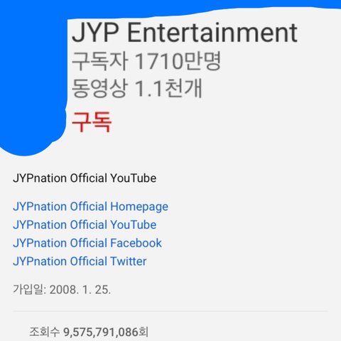 누적조회수 순위 SM(171억) > 블핑(105억) > 빅히트(102억) > JYP(95억) > 방탄(54억) > 트와(11억) > 레벨(2.8억) > 엑소 (2억)
