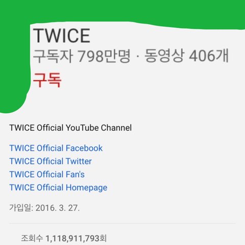 구독자 798만명 업로드 영상 406개 누적조회수 11억