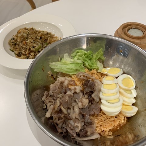 비오는날 갑자기 비빔면 먹고싶어서 한 비빔면과 잡채볶음밥이에요 ㅋㅋ