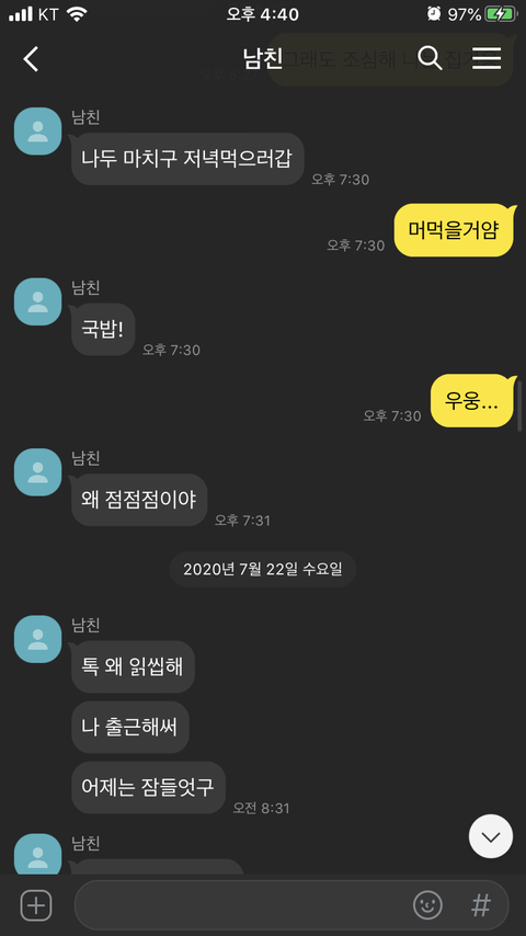 대화 이후 남친은 여름 휴가를 가지게 됨