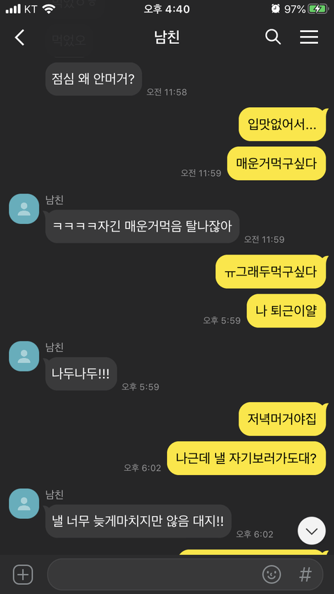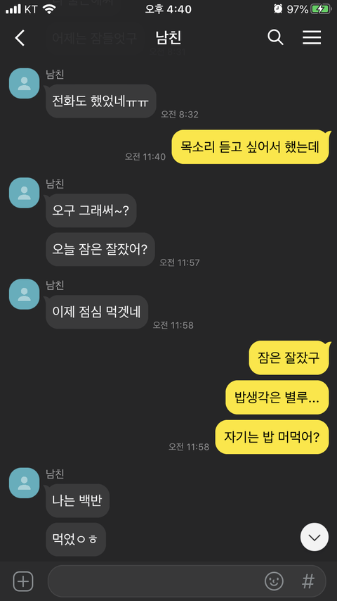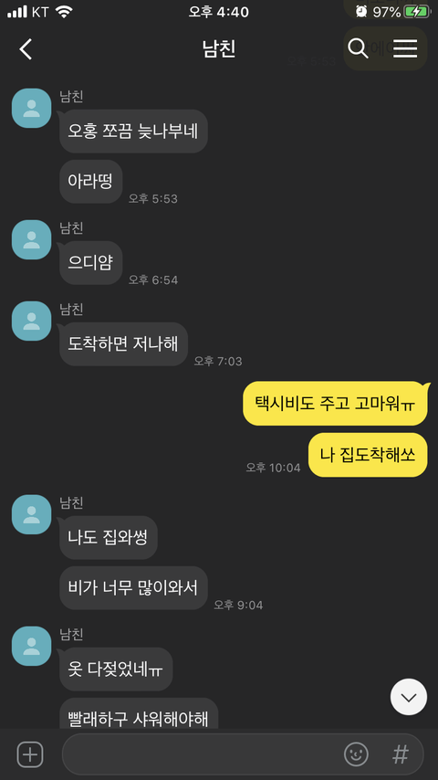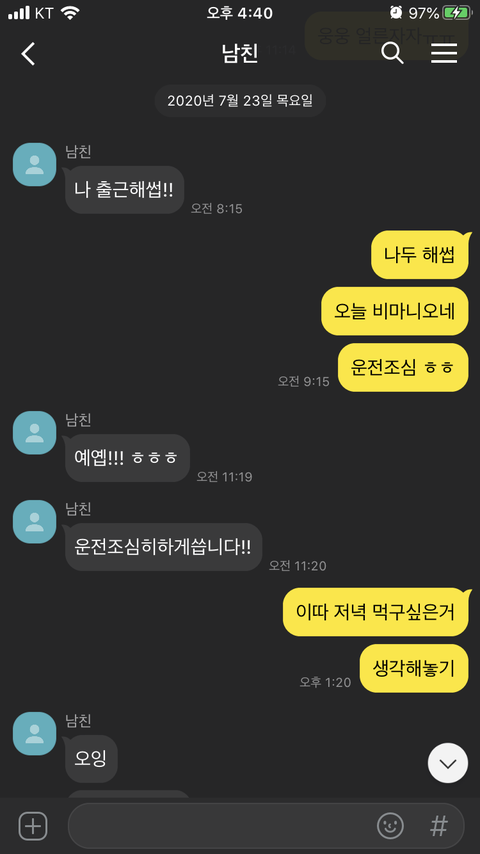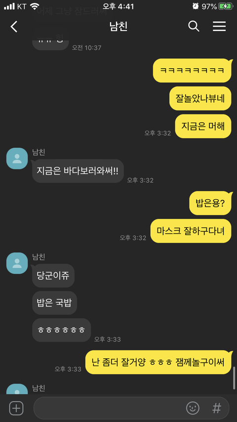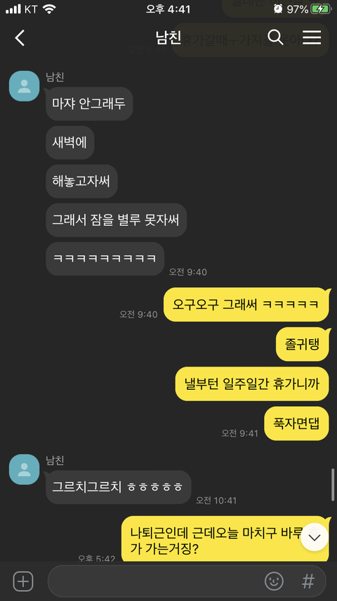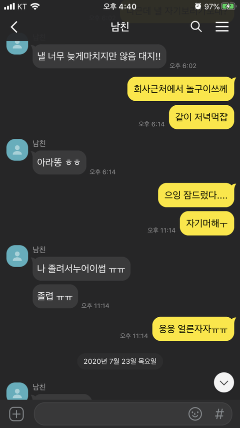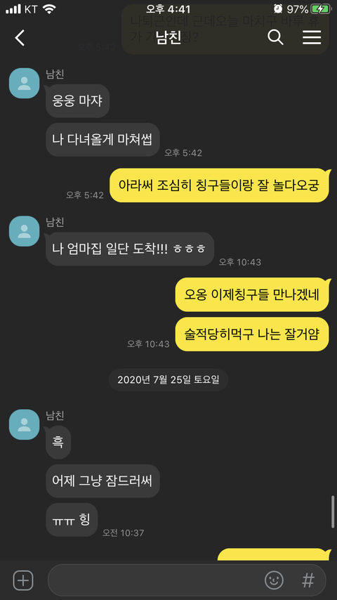 대화 이후 카톡(실제카톡이 아닌 재구성한 것입니다)