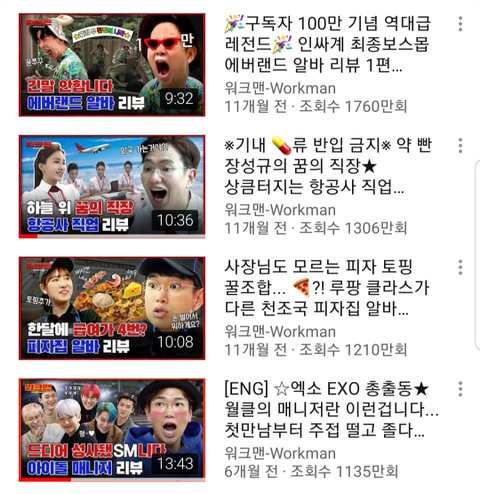 지금 워크맨 조회수 상위권들이 대부분 워크맨 한창 잘나갈때 나온거라서 조회수 터졌었던거라 에버랜드는 ㄹㅇ 넘사고 엑소 조회수 보니까 계속 늘던데 2위까지는 갈듯