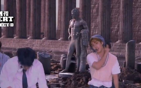 충격적인 동상의 꼬자이크...와 노래와는 관련 1도없는 배경의 조화.. 멤버들 크기가 들쑥날쑥 더보이즈의 걸리버화..(두번째사진 오른쪽 사람크기 주목)
