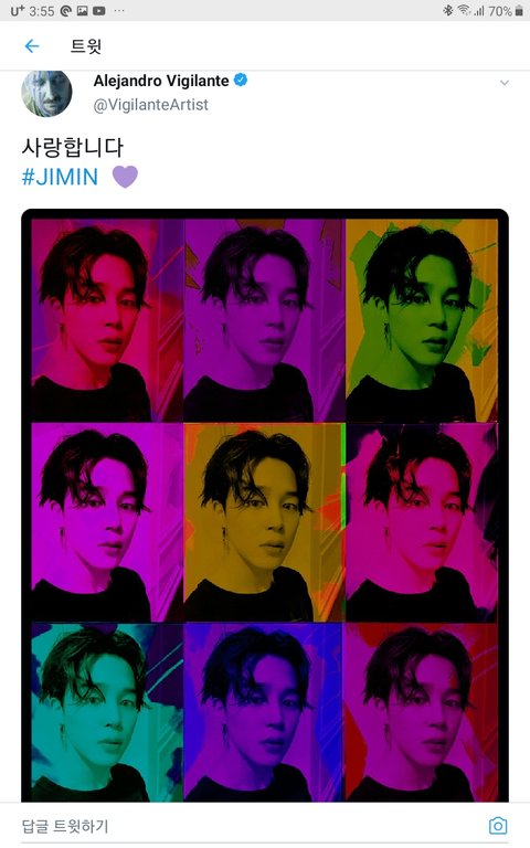 아르헨티나 예술가(알레한드로 비질란테)님이 오늘자 지민님 셀카를 팝아트로 만들어주심.