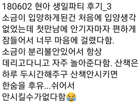 유기견 이양 센터에서 소금이 입양
