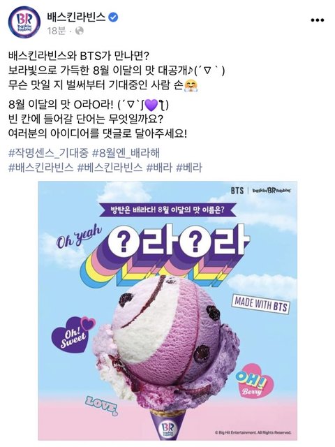배라 방탄버전으로 새로운 맛 나온대