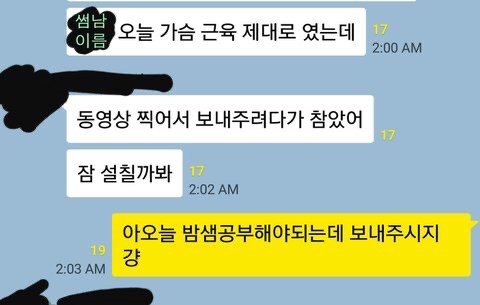 상대: “나는 요즘 운동 다니고 있어서ㅋㅋㅋㅋ”
