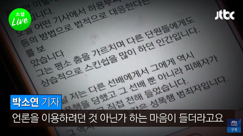 JTBC가 말합니다. 피해자의 목소리가 증거입니다.