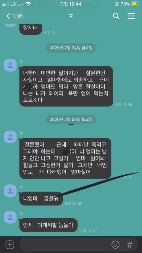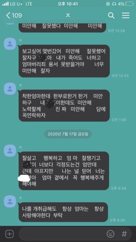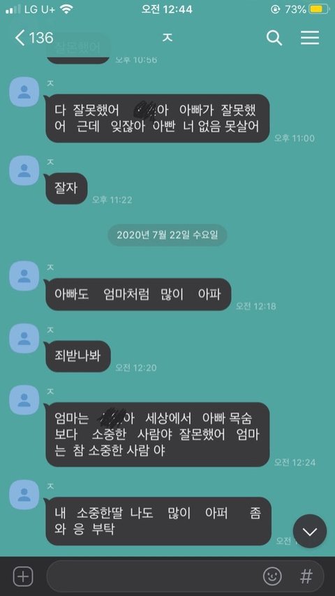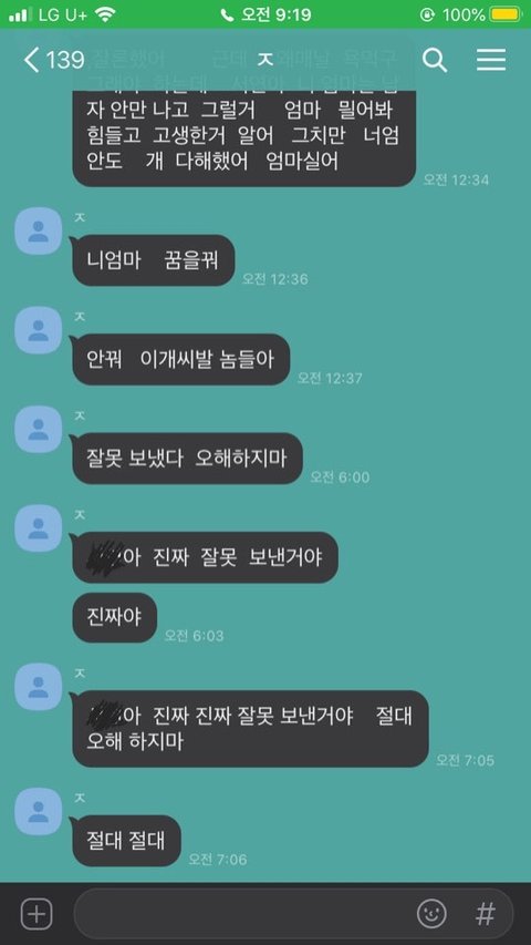 이런 문자가 온후 욕설 문자가 오고 나서 미치도록 힘들었습니다. 제가 뭔데 이렇게 까지 이런 취급을 받아야 하나 했어요. 차단을 한 후에 큰 아버지 (친아빠의 형이시고 저에게 항상 잘해주셨습니다)께서
