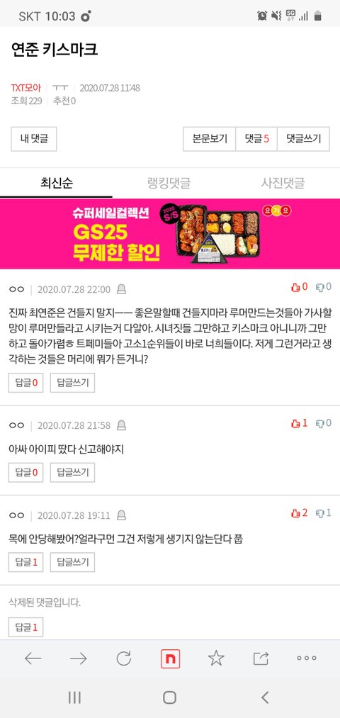 2번댓단애도 나중에 댓삭햇는데 빡ㅈㄴ오르게