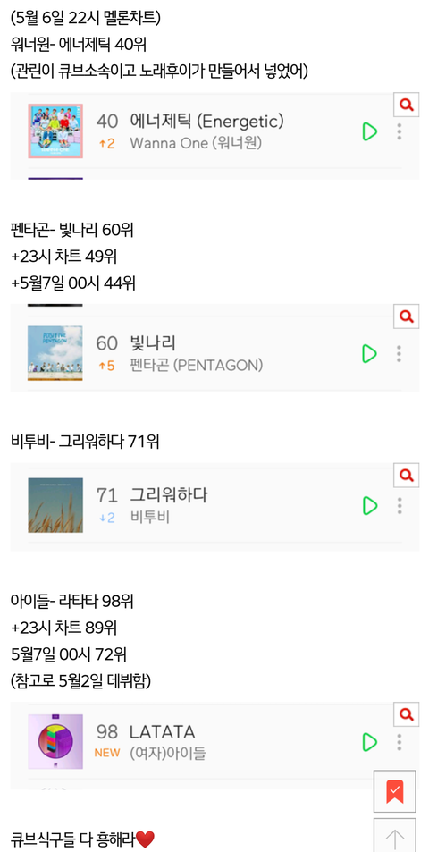 우리 큐브 소속가수들 실력오지고 노래도 너무 좋으니깐 앞으로 더더 잘되자!!!~~♥♥♥