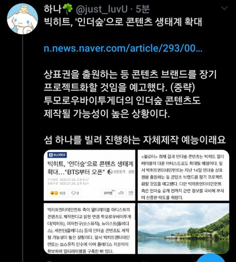 TXT 인더숲 콘텐츠도 제작될 가능성이 높은상황