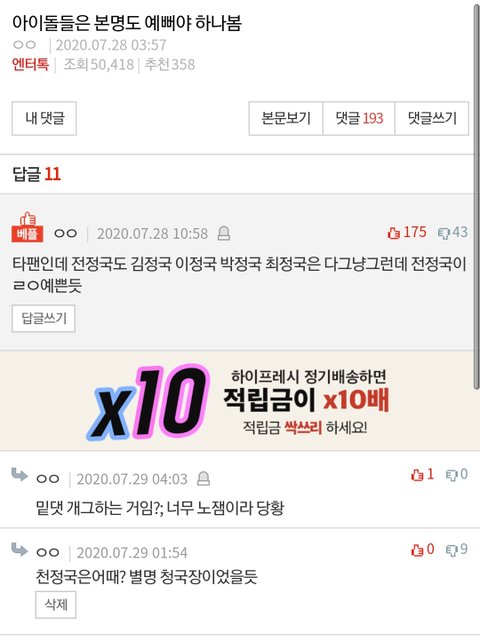 추천수 ㅂㄹ 되지도 않는 쩌리 댓글들 가져와서 정신승리 열심히 해라 ㅋㅋㅋㅋ 어차피 이쁘다는 댓글은 추천수 몇천 몇만갠데 ㅋㅋㅋㅋㅋ..