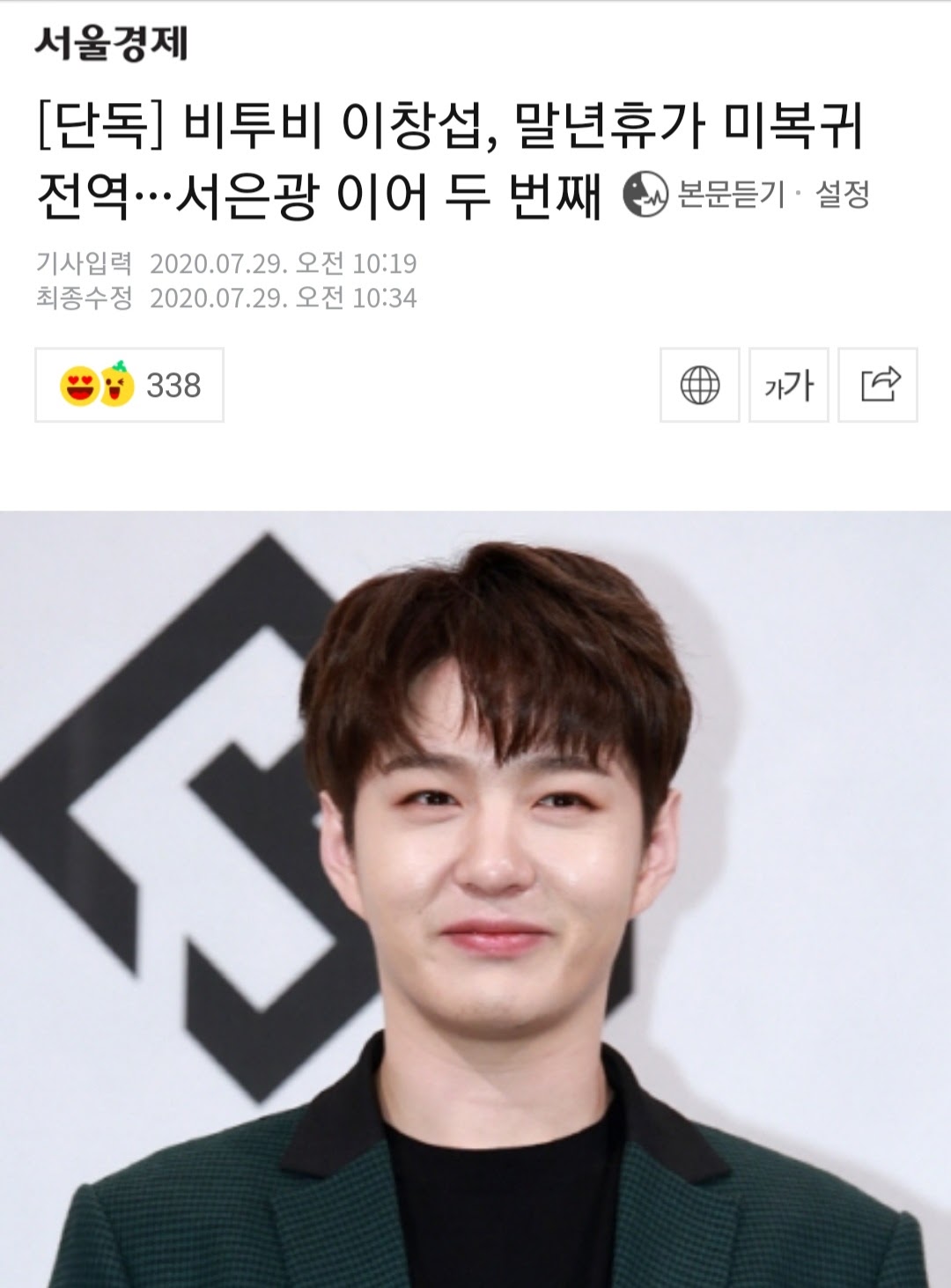 +) 왜 이게 톡선 가있지..??? 아무튼 우리 비투비 스쿼드 돌아오면 많이 응원해줘 9월 12일에 한명 더, 비투비 이민혁 둘째가 돌아올거야:) 비투비 이창섭 어제 7/29일 기사 떴어 8월 21일이 전역일인데 그 전까지는 군인 신분 유지한대..!!! 서은광이 ㅈㄴ 좋아하겠네..방송에서 보고싶은 멤버 있냐고 물으면 이창섭이라 하구.. 비트콤에서도 이창섭이라 하구... 연습생생활도 이창섭이랑 하구... 멜로디들 소리질러~~~!!!!!!!! 좀있으면 4투비ㅠㅠㅠㅠ 행복하다... 큐브랑 이창섭 때문에 어제오늘 행복하네하나둘씩 돌아오는거 보니까 되게 신기하다...ㅠㅠ