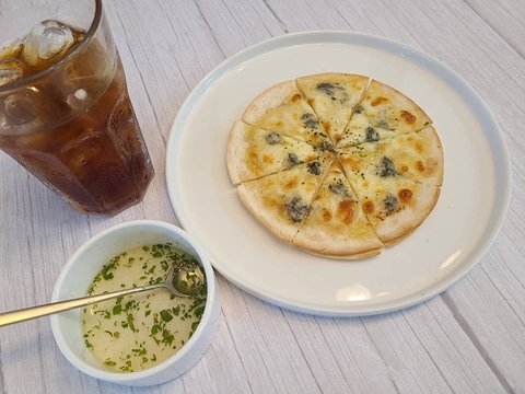 고르곤졸라 치즈 듬성 듬성 놔주고 모짜렐라 치즈로 마무리.