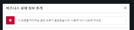 이때까지 총 13일 연속 시도중인데 매일같이 이 창이 뜨고 있어요.어떻게 하면 비즈니스 계정을 정상적으로 만들 수 있나요?