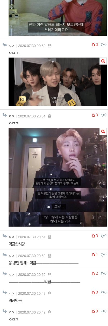 방탄 잘한다는 댓글에 못한단 댓글 달리니까 ㅇㅁㄱ 도배 ㅈㄴ함ㅋㅋㅋㅋㅋㅋㅋㅋㅋㅋㅋㅋㅋ