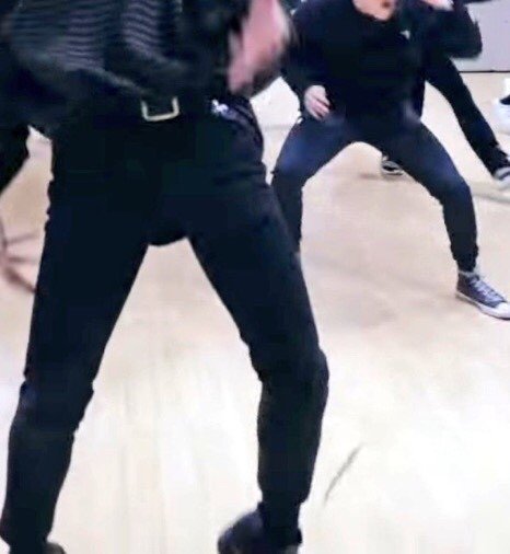 는 연습실 바닥에 신발길 남기기