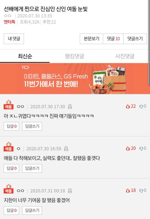 어떻게 글 추천수랑 베댓추천수가 똑같을수가있냐ㅋㅋㅋ 보통 글 추천만 누르지 댓글추천은 다 누르지는 않잖아ㅋㅋㅋ..