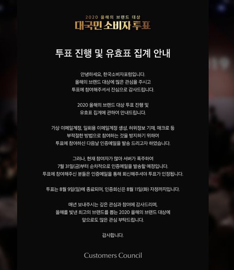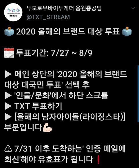 2020 올해의 부랜드대상 라이징부문 TXT투표