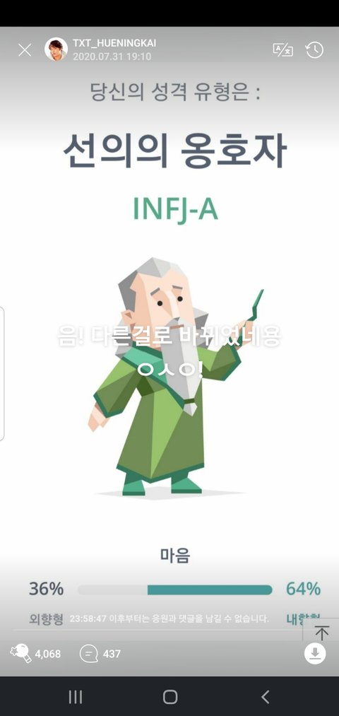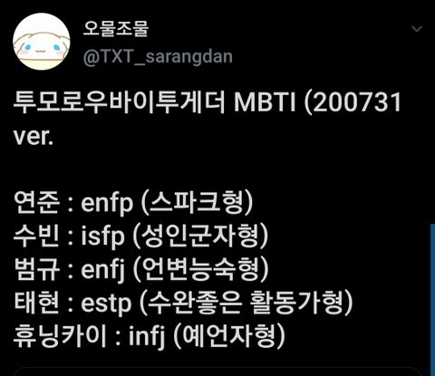 + 0731 휴닝카이 위바스/0731버전 애들 MBTI