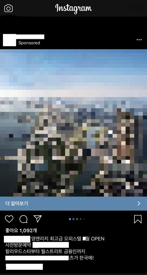 포털 인스타그램 들어가면 위 사진과 같이 그 오피스텔 광고가 보여 아무것도 못하고