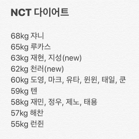 첨엔 틴탑 다이어트 할랬는데 엔시티부터 하고 할려고 ㅎㅎ 일단 나 엔시티 팬 아님 타팬임 다이어트 하면서 쟤네가 나를 번쩍 들 수 있을만큼 빼야징 !! 이라는 생각 가지고 했음 재현 지성에서 시작해서 벌써 해찬까지 끝냄 담주안에 런쥔 따라간다 두고봐라 그리고 나서ㅠ엘조랑 천지 따라잡는다 ;;;;;;