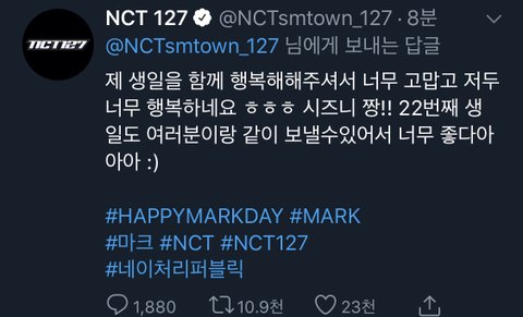 마크 귀엽네 생일이다아아아 너무 좋다아아아