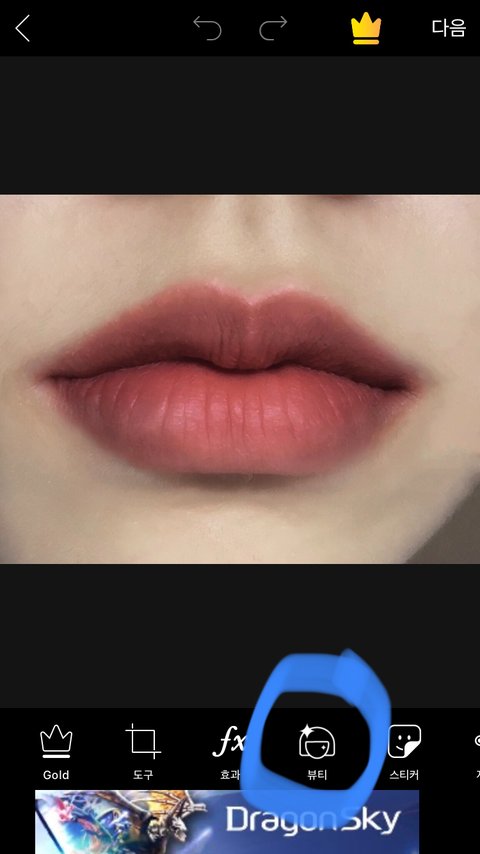 ++) 보정법은 픽스아트 들어가서 뷰티 - 쉐이프변경 가면 직접 손으로 모양 다듬을 수 있는데 입술모양 보정은 다 그걸로 한 거임 입술색은 뷰티 - 피부톤 가면 좀 빨간 톤인 색 있는데 그거 직접 입술에다 칠하면 됨 틴트바른거아님