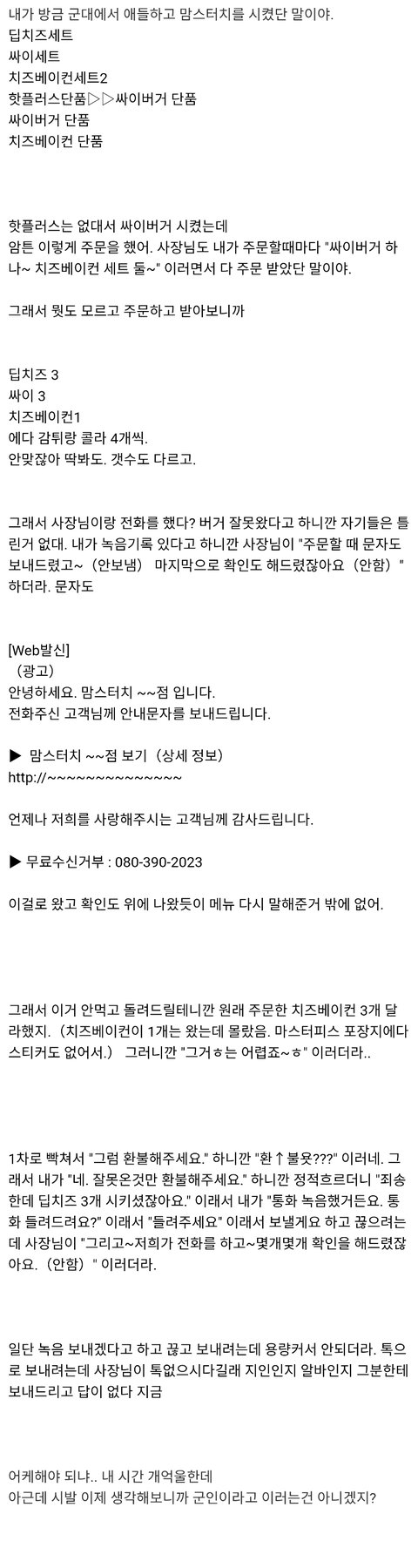 맘스터치에서 환불을 안해줘ㅜㅜ.jpg