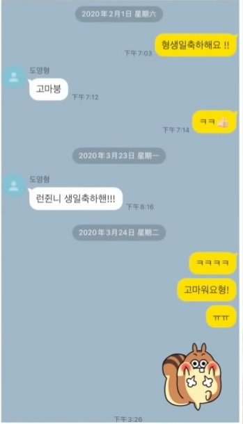 자기처럼 귀여운 이모티콘 쓰는 황런쥔이나 고마붕 도영이나 도영형이라 저장 되어 있는거나 안 친하지만 뭔가 감동을 표현하고 싶을 때 쓰는 ㅠㅠ 까지 완벽해 너무웃겨