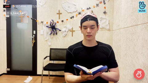ㅋㅋㅋㅋㅋㅌㅋㅋㅋㅋㅋㅋㅋ 결국 같이 브이앱하다가 멤버는 가고 마무리 캡쳐타임은 성경책과 함께..