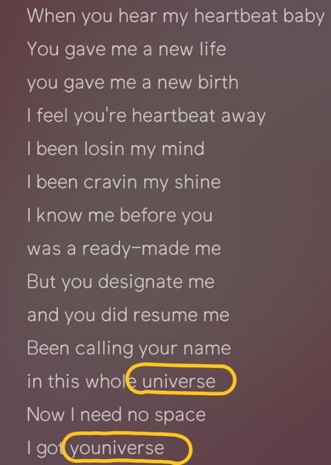 →이제 빈 공간은 필요없어, “너라는 우주”를 가졌으니까