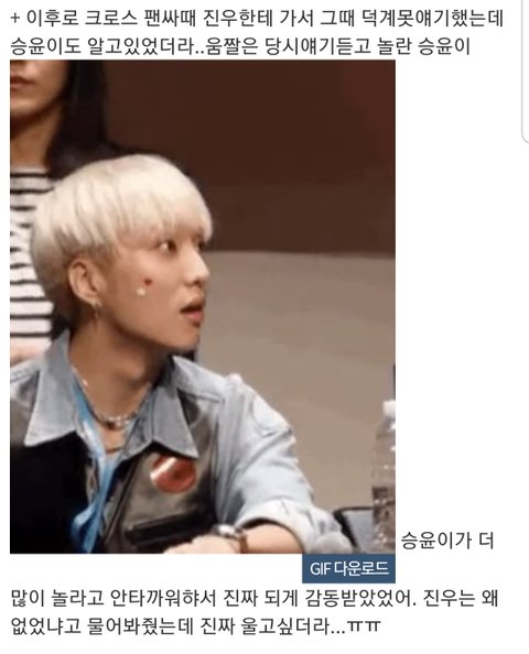 저 일화 인서가 추가로 풀어준거! 안타까워해준 승윤이도 왜 없었냐고 물어봐준 진우도 스윗하고 귀엽다ㅠㅠㅠ