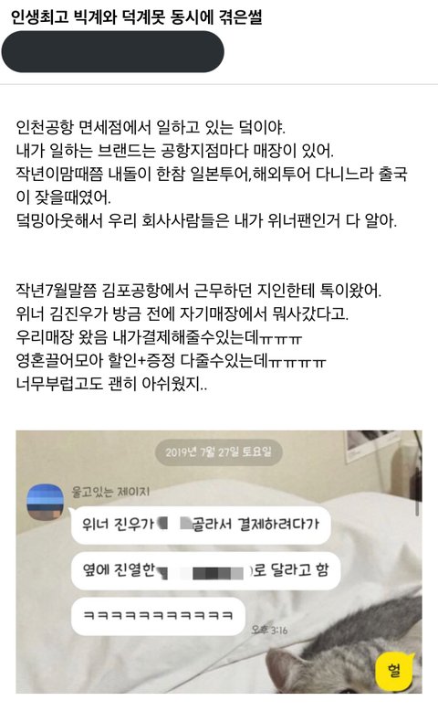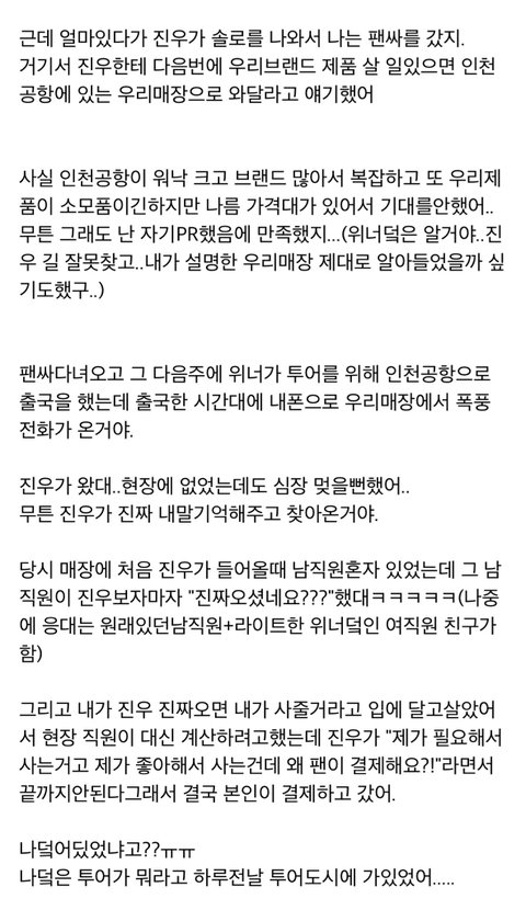 위너 김진우 일화인데 팬분 내가 다 안타까워