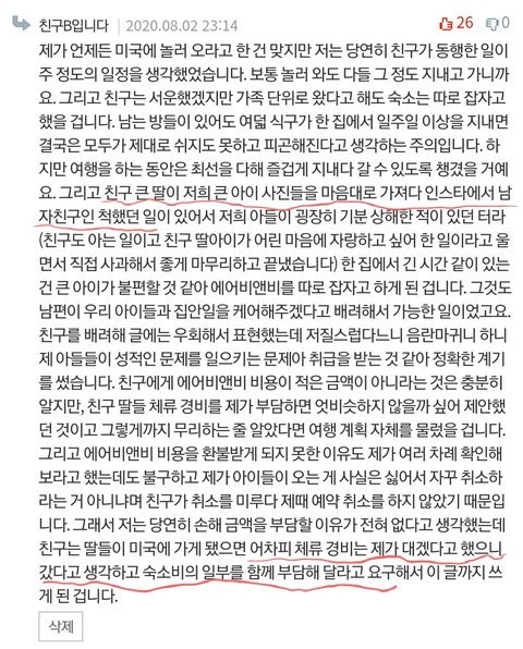 친구 A B 하면서 김치 보내주고 자기 딸들을 미국에 보내네 마네 했던 그 글 주작인 것 같아요.