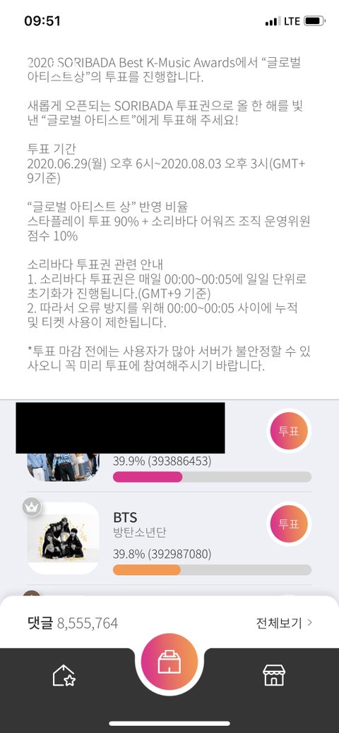오후 3시에 슽하플레이 글로벌 상 투표 마감이니까