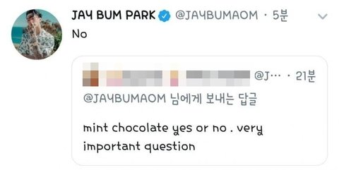 팬 : 민트 초콜릿 yes or no ? 아주 중요한 문제임