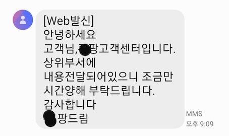 보상? 저도 물론 일주일가까이 심적 고통 받은것과 업무적 손실을 본것, 물건에 대해 당연히 보상받아야 된다고 생각합니다. 그치만 그저 일개 고객 클레임이라 생각하고 얼렁뚱땅 보상해주고 넘어가려는 X팡의 태도에 치가 떨립니다..