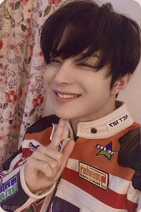 어떤 포카가 끼워져 있는데 그 사람이 너무 좋은데 누군지 모르겠어 물어볼수도 없고 그 눈웃음 짓고 흑발이고 뒤에 꽃무늬? 커튼있고 옷이 좀 특이해 제발 찾아줘