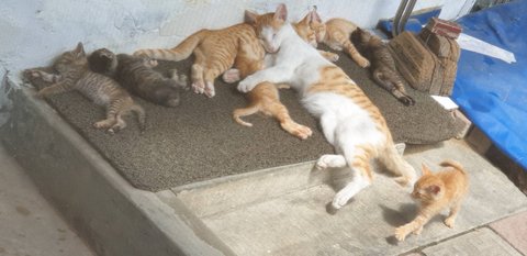 고양이 싫어하는 이웃들도 있고 해서 개체수가 너무 늘어날 것이 걱정되어 올해 초에 군청에 신고를 해서 모두 포획을 해서 중성화를 보냈었는데 숫놈들은 수술을 했으나 암놈 세마리가 모두 임신중이라해서 결국 다시 데려오셨습니다.(아가들이 젖 떼고 나면 중성화 할 예정입니다)