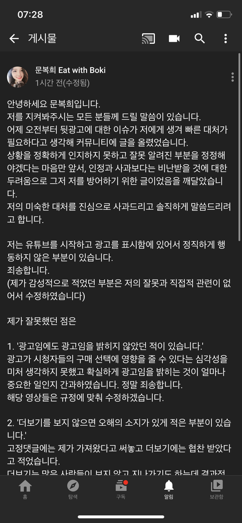 유투버들 주작치고 반성도 안들어간 사과문클리셰 ㅈㄴ지겨움ㅋㅋ