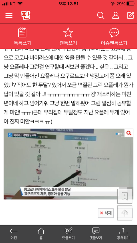 안녕하세요 나날이 증가되는 코로나 감염자 수에 지금 어떻게 연구가 되고 있는지 모르고 있기에 그냥 걱정만하다가 혹시나 혹여나 제 이런 바보같은 의견이(?) 도움이 될까봐 다시 한번 올립니다 ...