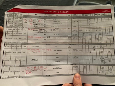 연말무대 큐시트 몇개