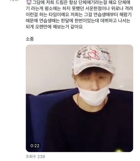 심지어 단체 얘기도 꾸준히 해오는것도 귀엽고 서로 아끼는게 눈에 다 보임... 진짜 너무 순수하고 귀엽다