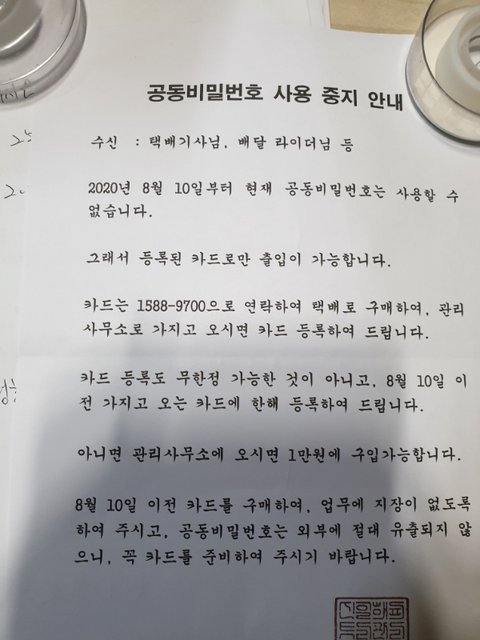 앞으로는 공동비밀번호는 외부로 유출 불가이니 개인적으로 출입 카드를 구매해 관리사무소에 등록해야 출입할 수 있다고 하네요